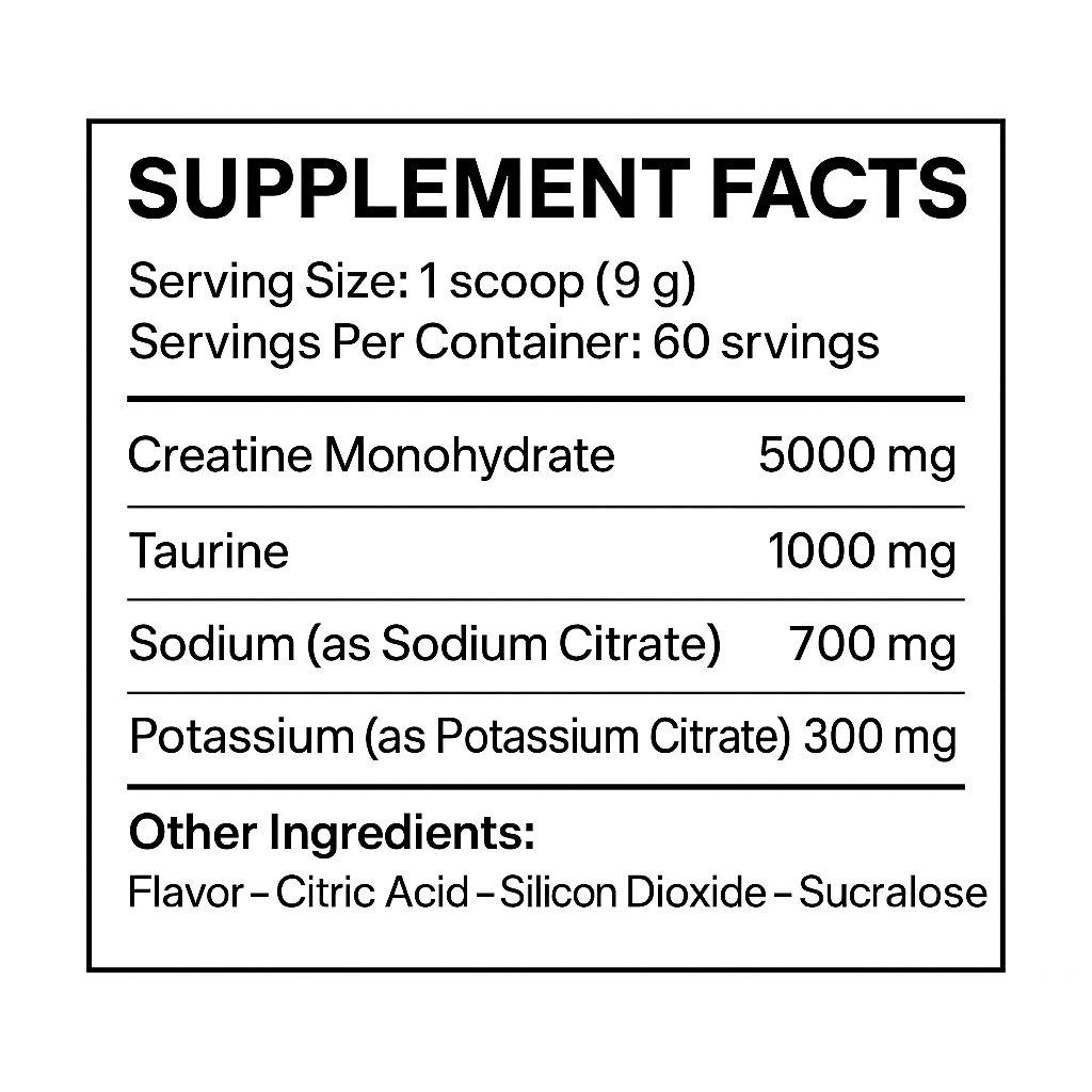 The Mechanism: Creatine, Taurine, and Sodium are all powerful osmolytes. When combined in this specific ratio, they pull fluid from the bloodstream into the intracellular space. This hyper-hydration creates massive muscle fullness (the "pump") and stimulates protein synthesis, forcing the muscle to grow.
